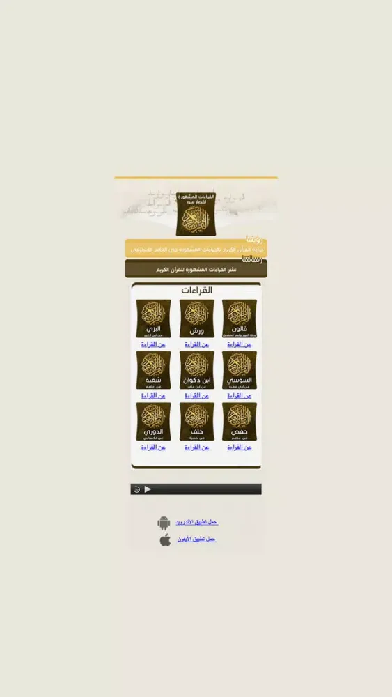 تطبيق القراءات المشهورة لقصار سور القرآن الكريم رؤيتنا قراءة القرآن الكريم بالقرآءات المشهورة في العالم الإسلامي رسالتنانشر القرآءات المشهورة للقرآن الكريم