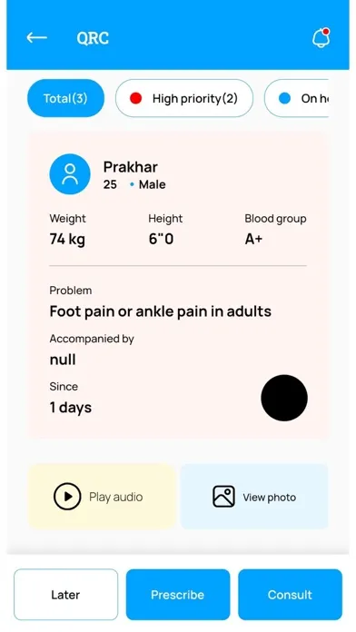This is a doctor-patient engagement application. The app aims at managing doctors' time better with workflow optimizations and helps with the exchange of medical data with multiple stakeholders such as doctors, labs and pharmacies leading to efficient operations and better financial margins. It also enables access of qualified doctors to remote patients in a very efficient way by connecting with them at an early stage.
