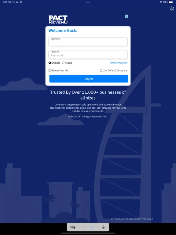 This application is used for accessing modules / features of ERP [Accounting, inventory, HRM, CRM] that are exposed from our product PACT, which is a ERP solution hosted in customer premises.