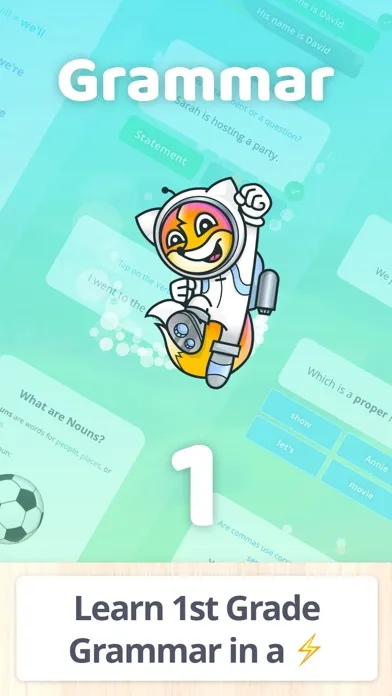 Give your kids everything they need to learn essential 1st grade English grammar skills in a flash. 40+ step-by-step lessons play like levels of a game. Improve your child's reading, writing, and vocabulary skills with Grammar Ace.