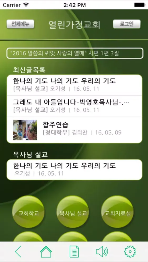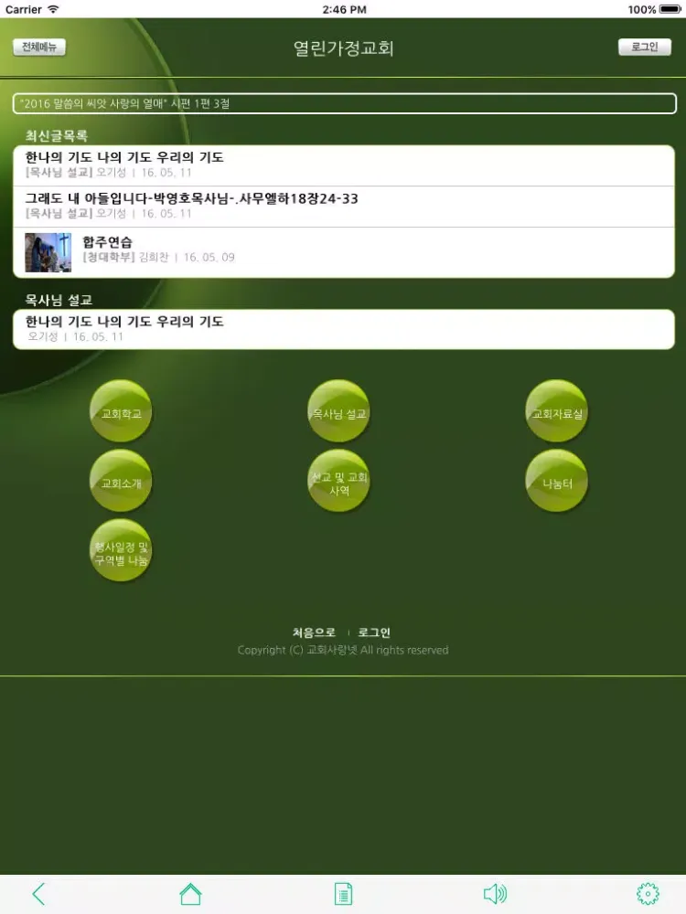 * 100% 연동형 앱 : 홈페이지에 등록된 내용, 게시물, 설교영상, 사진 등의 콘텐츠를 앱과 100% 연동하여 실시간으로 앱을 통해 확인할 수 있습니다.