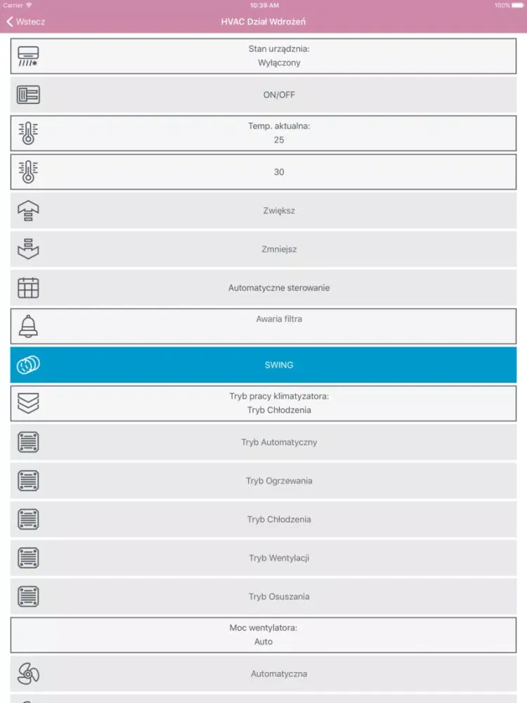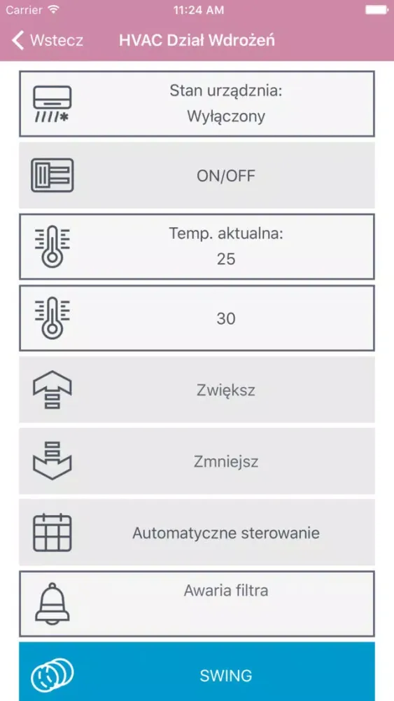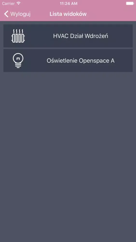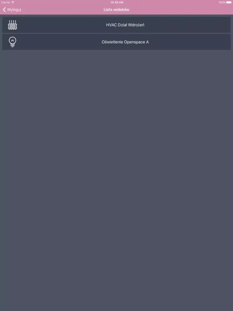 Aplikacja umożliwia zdalne sterowanie budynkiem wyposażonym w system automatyki budynkowej.
