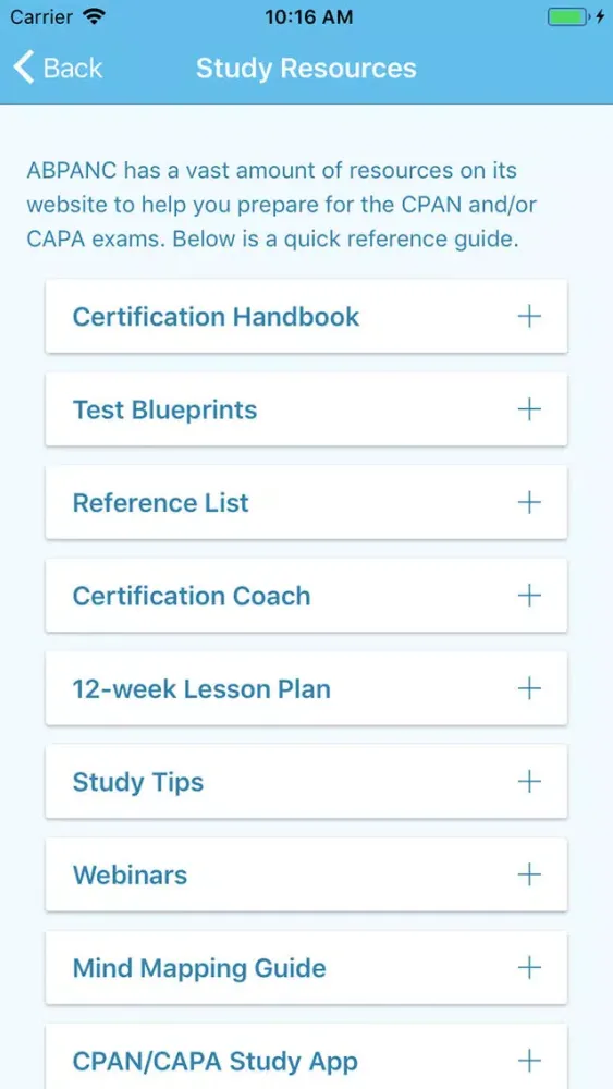 The CPAN® / CAPA® Perianesthesia Nursing Certification App is a collection of resources to help you prepare for and register for the CPAN and/or CAPA exams. Contents include eligibility and registration information for the exams, plus study resources, lesson plans, interactive reminders, a link to testing locations, practice exams and more.