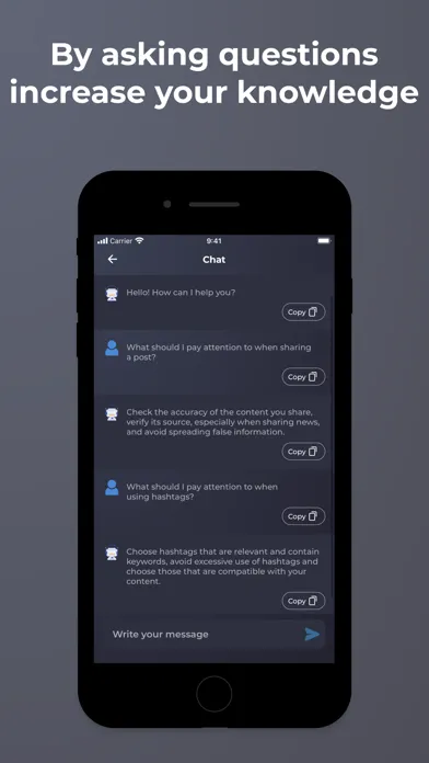 We offer a powerful mobile app to optimize your social media profile and interact with the AI chatbot. Thanks to the profile analysis feature, you can examine your social media account in detail and obtain important data to increase your interactions. You can also have fun and informative conversations with the artificial intelligence chat bot.