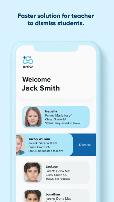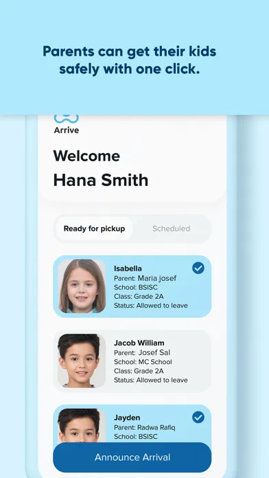 Arrive is a school dismissal solution designed to organize the full student dismissal process quickly and safely. Teachers are notified of parents' arrival, and dispatchers can validate the identity of the guardian. The pickup app has the most straightforward user experience possible.