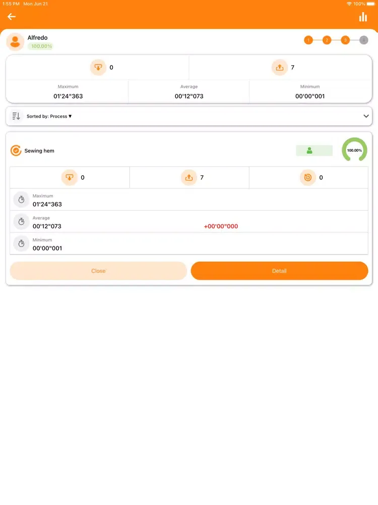 ◆ The worker opens the specified process details screen and presses the count button after each work is completed.