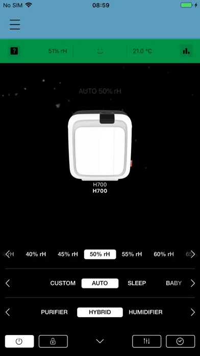 ◦ Change between Hybrid, Purifier and Humidifier mode (with clear instruction animations for an easy change)