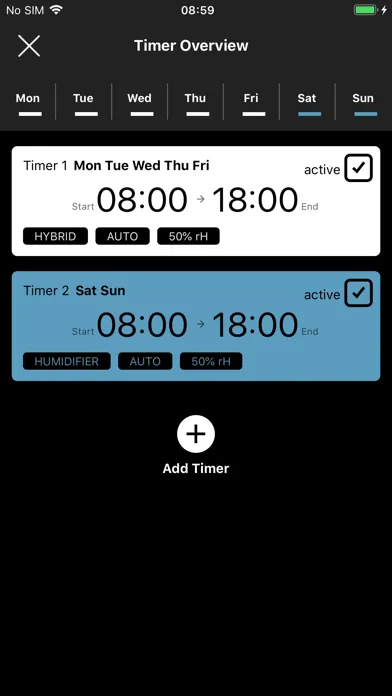 ◦ Lock mode (physical button of the unit can be blocked by the app, this is good if there are pets or children in the household)