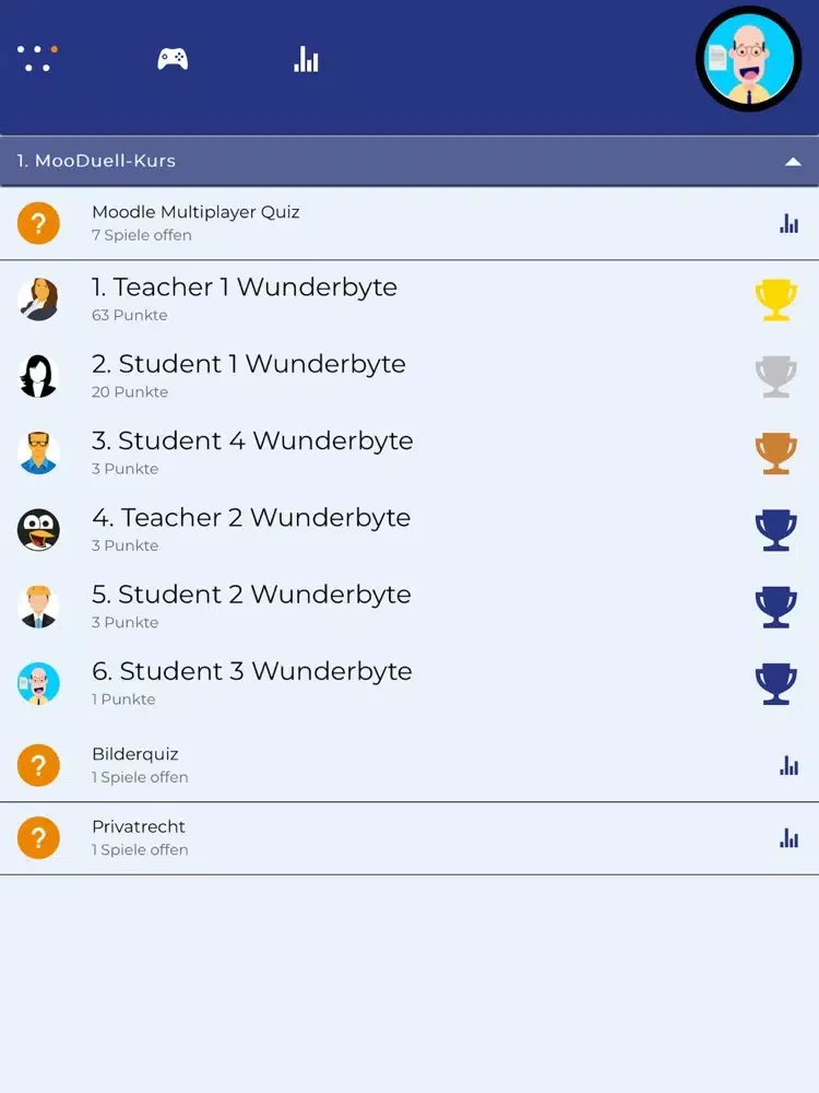 MooDuell ist ein Quizapp die Fragen direkt aus Moodle laden kann. Ziel der Entwicklung war eine möglichst einfache Administration dieses zusätzlichen Angebots, um das Lernen attraktiver zu gestalten. Daher verwenden wir nur die Ressourcen der existierenden Moodle-Installation. MooDuell benötigt keinen zusätzlichen Server, alle Daten bleiben bei den Kunden, es braucht nicht einmal ein Moodle-PlugIn. Teacher-Rechte im Kurs reichen aus, um ein passendes Quiz einzurichten. Dadurch gibt es weder Sicherheitsprobleme noch zusätzlichen Wartungsaufwand.