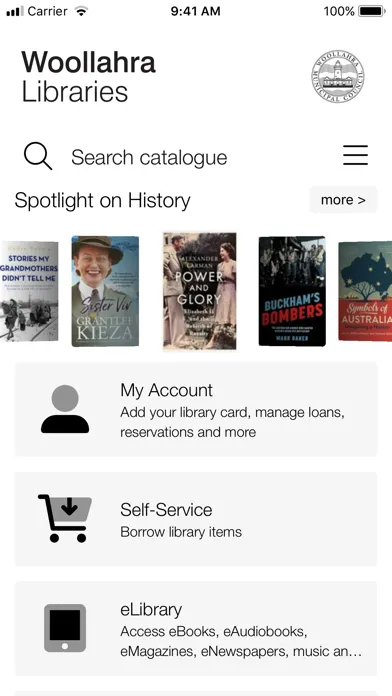 Access Woollahra Libraries from your iPhone or iPad. Join the library online, manage your account, search the catalogue, renew and reserve items. Put in a request for an item that we don’t have yet. Access eBooks, eAudiobooks, eMagazines, and eFilms. Look up your nearest library and find information about library opening hours. Give us your feedback and enjoy the service!