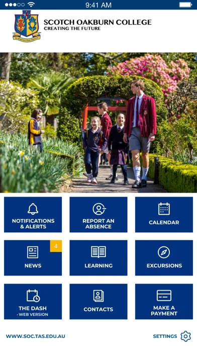 Call and email the school directly from Scotch Oakburn College App. All key contact details are listed. You can also email and notify your child’s absence through the app.