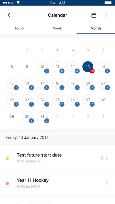 The School Calendar contains details on events and key dates at the School. Click on the event to see further details and information or search for an event. The calendar can also be used as an eDiary with students having the ability to add homework tasks for completion. The calendar menu item will show how many events are in your calendar for that day.