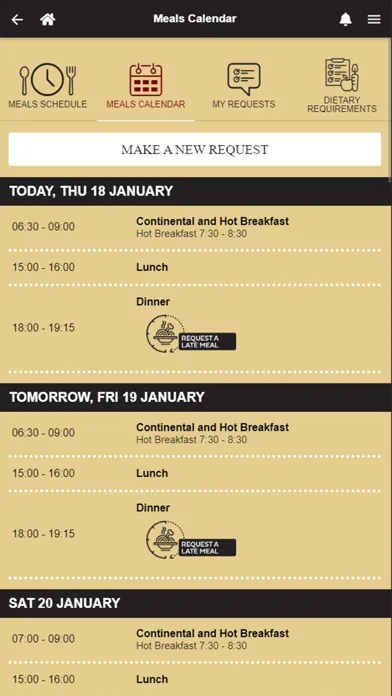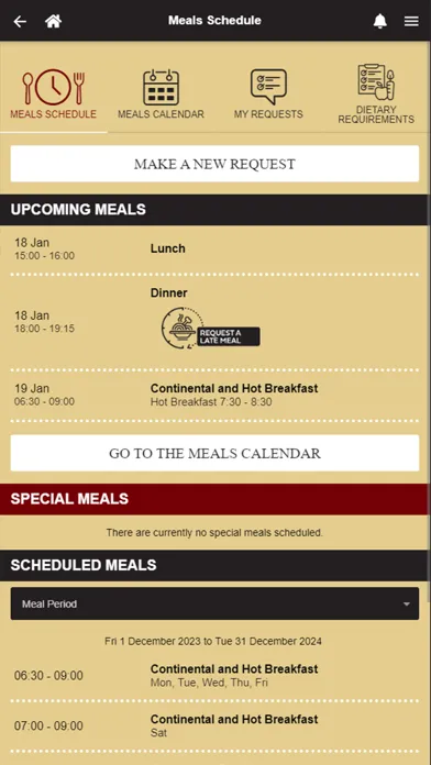 * Dining Hall schedule: meals, dietary needs, cancellations & changes