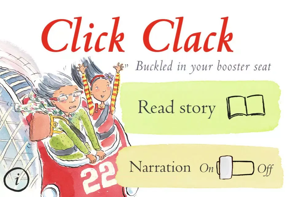 Written by renowned Australian author Danny Katz and illustrated by Mitch Vane Click! Clack! follows the story of a group of children as their imaginations take them on fun filled journeys in rocket ships, on camels and rollercoasters all while in the comfort of their booster seat!