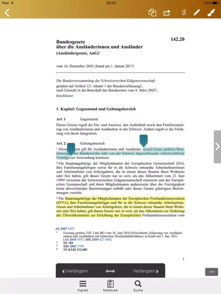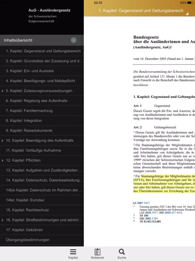 AuG - Ausländergesetz der Schweiz iPad Screenshots
