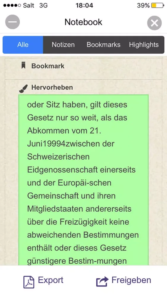 Die Besonderheit der App liegt darin, dass sie über diverse Funktionen verfügt, welche die Arbeit mit den Gesetztestexten erheblich vereinfacht.