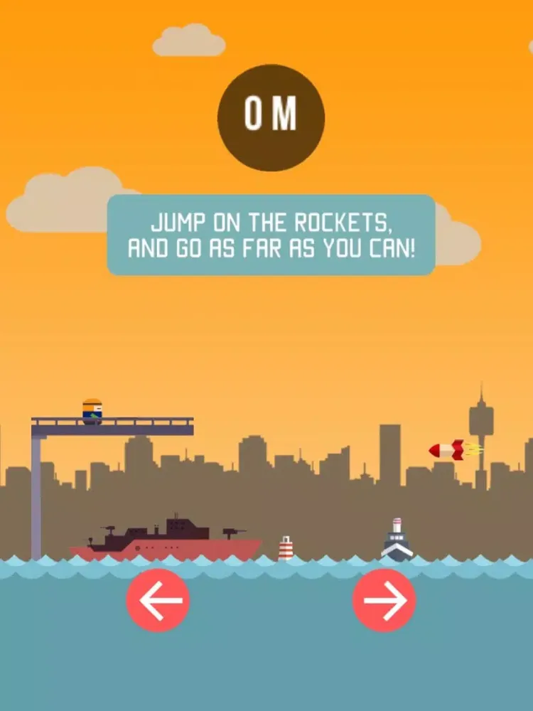 Your goal is just jump on the rocket and go far as you can. Any wrong move will take you back from where you started. This game requires 100% concentration. If you lose it, you lose the game.