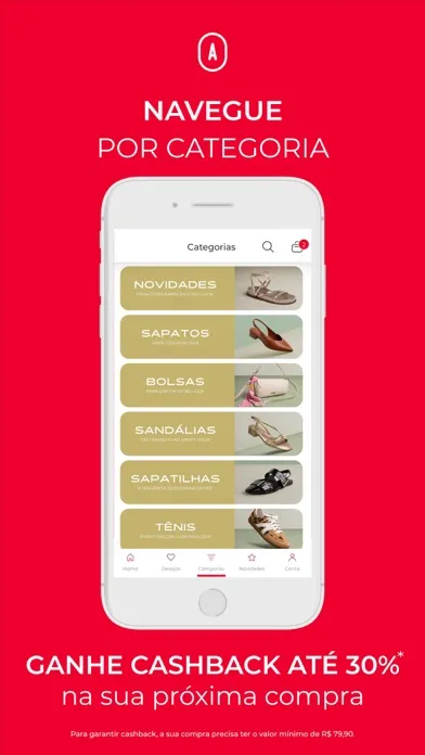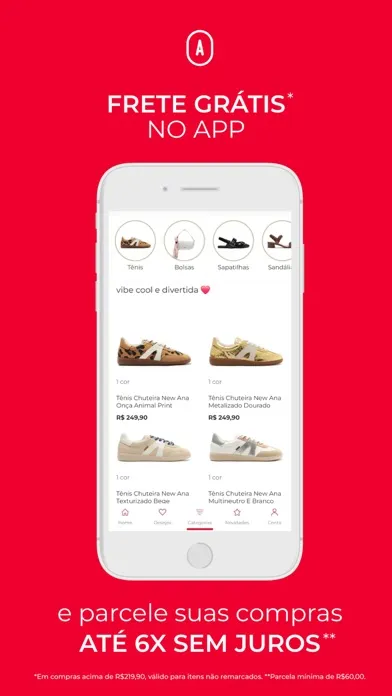 Sapatos, bolsas e muitas novidades para você arrasar sempre. Acompanhe todos os lançamentos diretamente da tela do seu celular, com produtos e conteúdo que fazem o seu estilo. Quer mais? Promoções, descontos e benefícios exclusivos em primeira mão para você que procura uma moda versátil, com personalidade, mas sem abrir mão do conforto na hora de comprar.