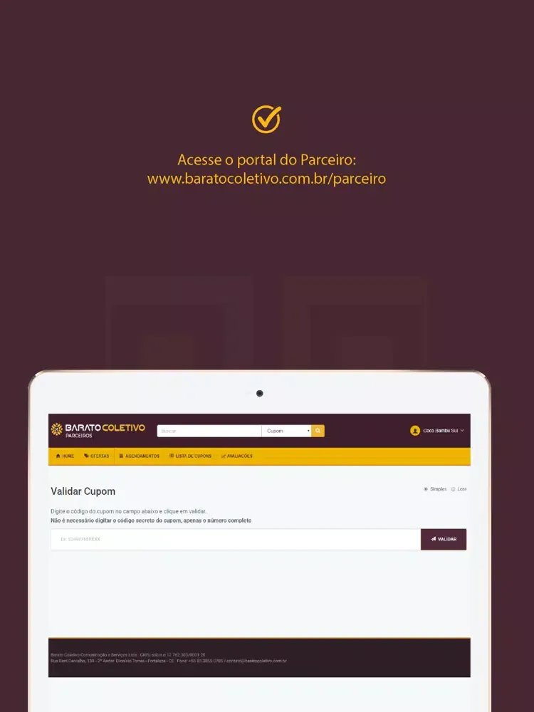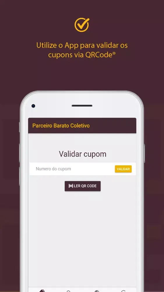 Utilize o aplicativo para validar de forma mais simples e segura os cupons dos seus clientes.
