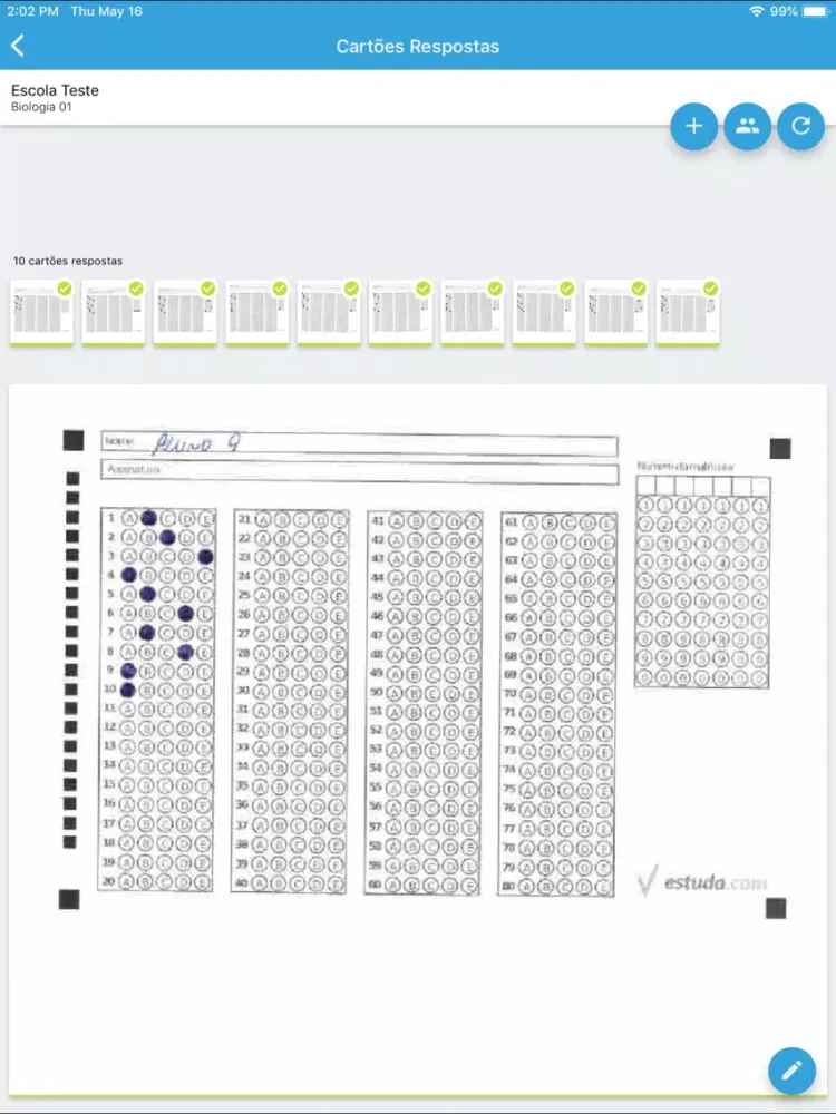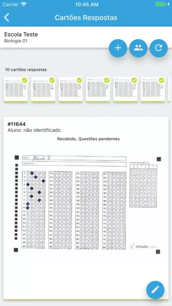 Envie cartões respostas das avaliações realizadas pelos alunos de forma fácil e rápida através.