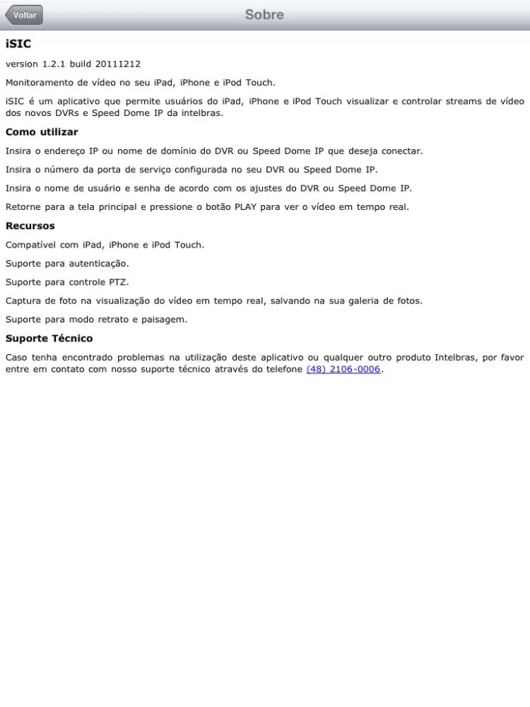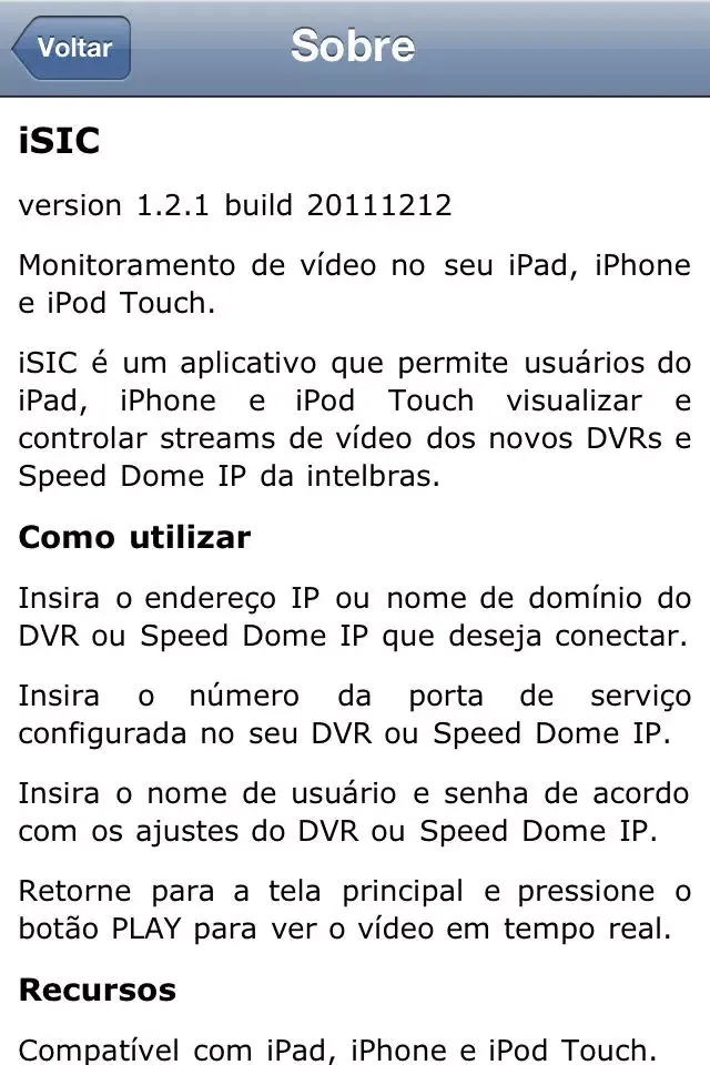 Intelbras iSIC é um aplicativo que permite usuários do iPhone visualizar e controlar streams de vídeo dos novos DVRs e Speed Dome IP da Intelbras.