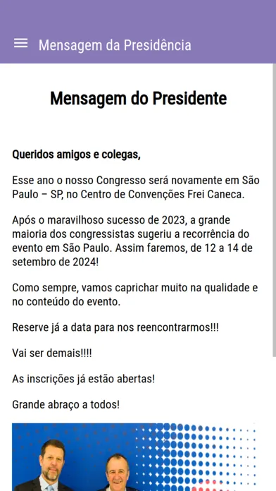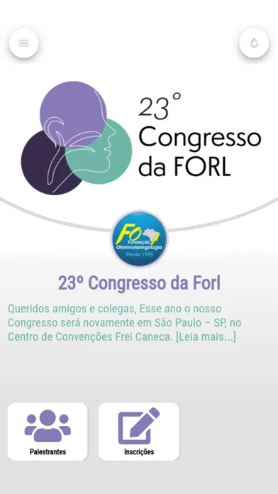 O aplicativo do 23° Congresso da FORL consolida um dos mais importantes eventos no Brasil e em 2024. Teremos inúmeras novidades durante o congresso em sua programação científica e social. Acesse o site do evento: https://www.congressoforl.org/