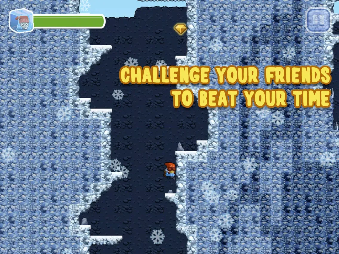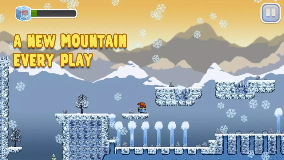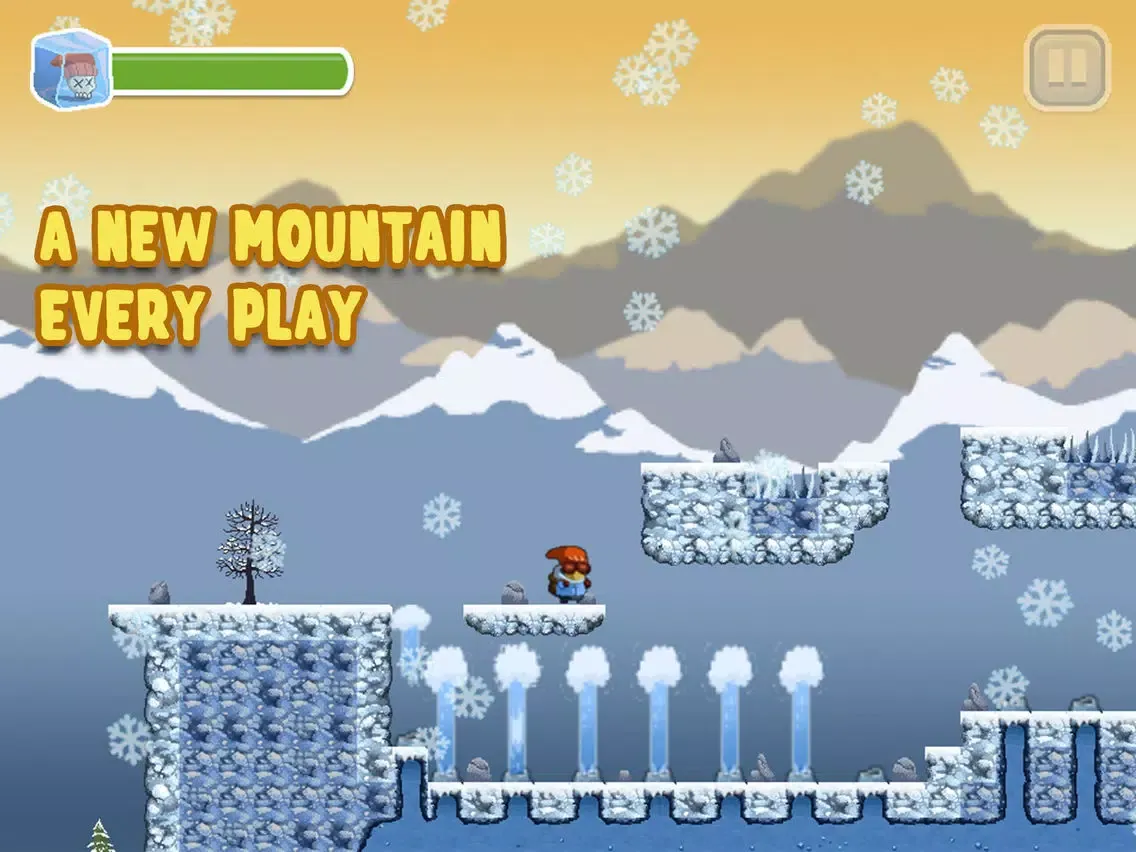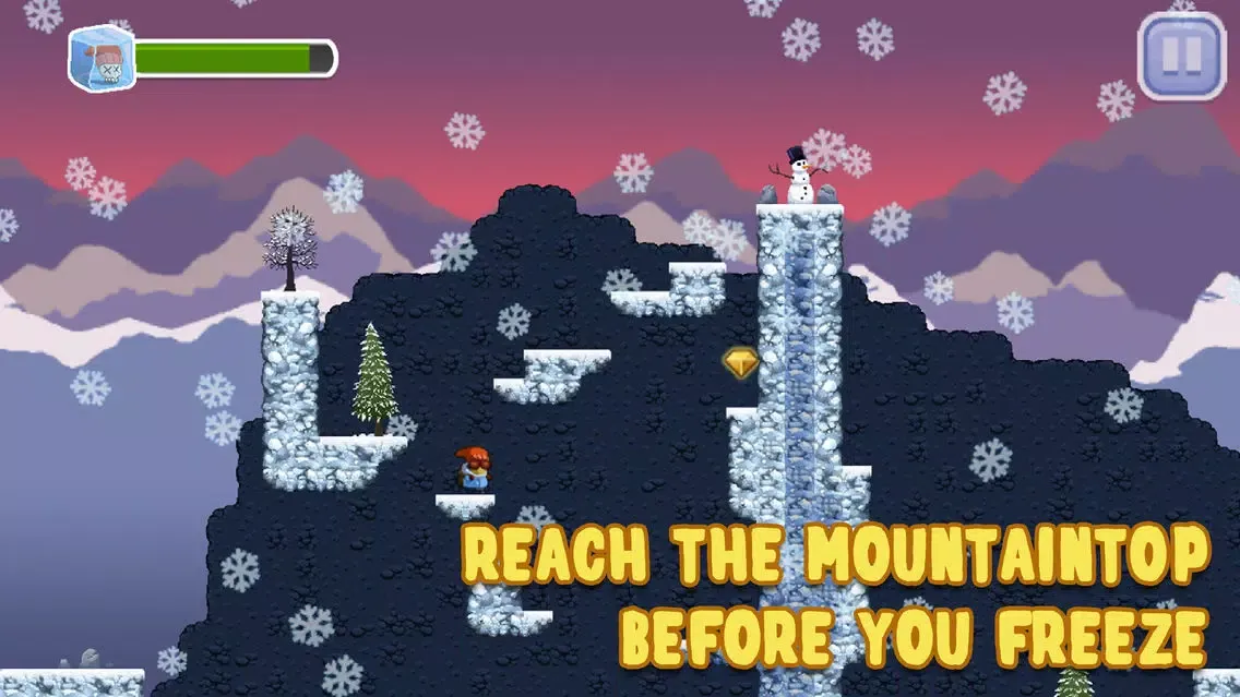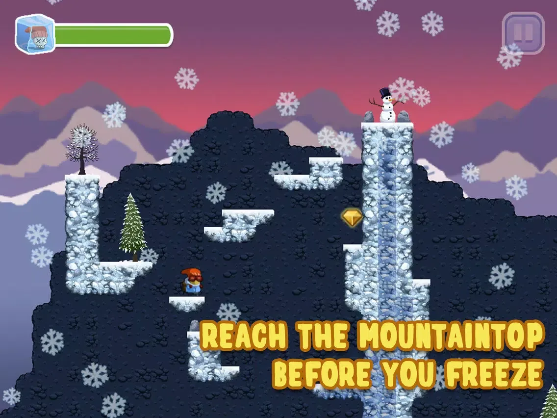 In the game, you are an adventurer who need to run to reach the highest point of the mountain, facing snow and extreme cold. Time is your biggest enemy, you need to be quick to not freeze and die of cold. His agility is also important to face deadly and dangerous geysers and spikes.