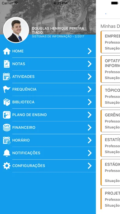 O aplicativo permite que os alunos do Centro Universitário de Patos de Minas – UNIPAM acessem o plano de ensino, plano de aula, notas, atividades, frequência, materiais, financeiro, biblioteca e horário.