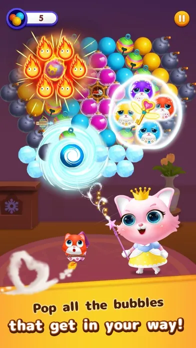 - Clear all the bubbles on the screen or complete mission of each level before you run out of move to rescue Anna's kittens and Queen Sophia to level up and get 3 stars.