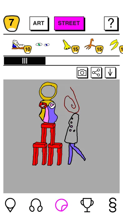 Sammle Stickers und stelle dein eigenes Kunstwerk her: Mit jedem entdeckten Kunstwerk verdienst du Stickers, die du nutzen kannst, um dein eigenes Kunstwerk zu gestalten. Lass deiner Kreativität freien Lauf und teile dein Meisterwerk mit deinen Freund:innen.