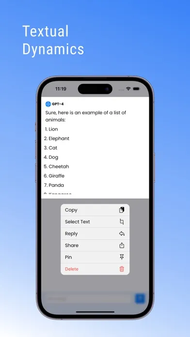 With features like Copy, Pin, Share, Delete chat/message, Select Text, and Pinned, AI Chat 4 is not merely on par with its competitors, it’s a stride ahead. These functionalities bring a blend of convenience and control, making your user experience exceptionally intuitive and enjoyable.