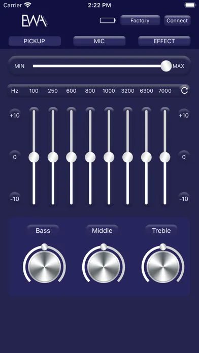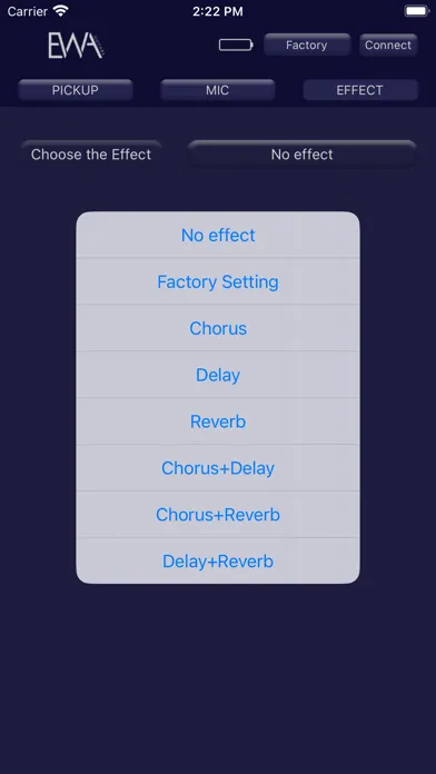 By using the APP, user can control the pickup after connecting with the Bluetooth(BT), Dual BT implements the background music and the volume control both of Pickup and Microphone, the system holds several bands EQ, handling three effects like Chorus, Reverb and Delay, all Effects can be combo freely, so you can adjust them in details.