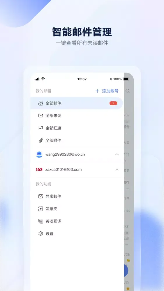 实现多个邮箱账号邮件聚合展示与管理。