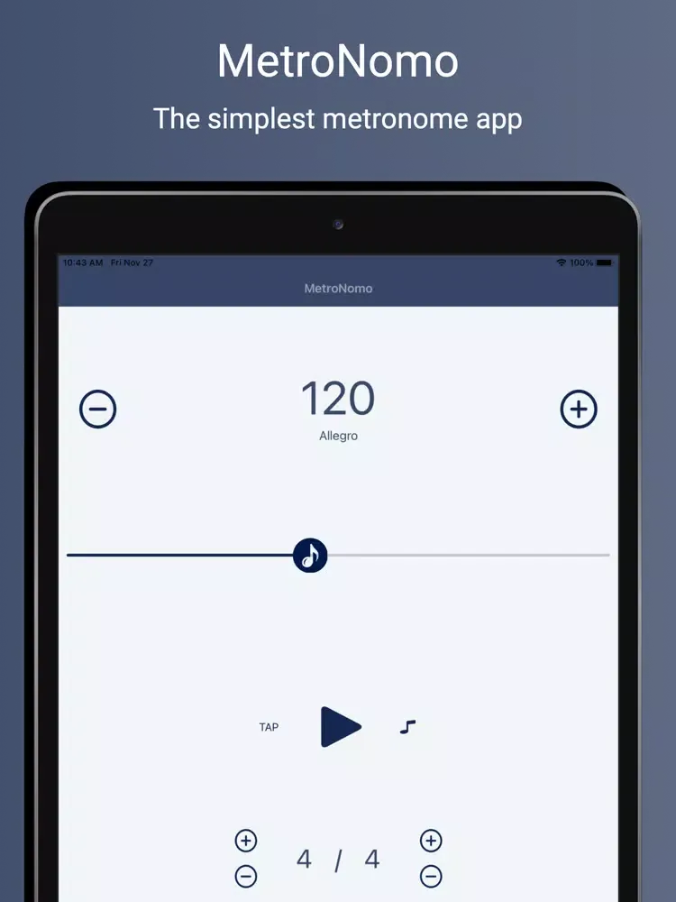 MetroNomo is the simplest metronome app for iPhone and iPad to help you master both your daily practice sessions and your stage performances. The core of the app is built on an extremely precise, studio quality metronome.