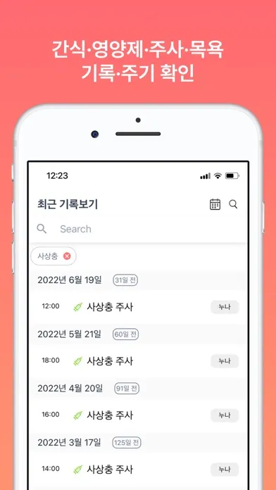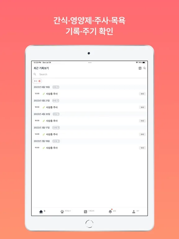 의사 선생님, 저번주부터 나비가 눈을 간지러워 했어요...아니 저저번주였나? 작은 증상도 질병의 전조증상일 때가 많아요. 특히 병을 앓고 있는 동물이라면 더더욱 신경써야할 것이 많죠. 구토・가려움・눈물 등, 반려동물의 사소한 건강 이상 신호를 기록할 수 있어요.