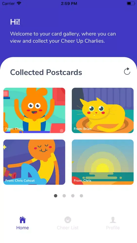 Send adorable collectible digital postcards to your favorite friends and family with Cheer Up Charlie.