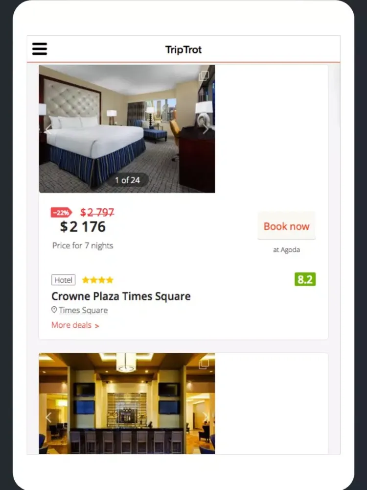 Plan your next vacation with TripTrot to discover the best flights and hotels at the most suitable prices, allowing you to save money on your next trip. TripTrot searches hundreds of other travel sites so you don’t have to, comparing between millions of hotels worldwide and global flights to find bookings that best fit your budget.