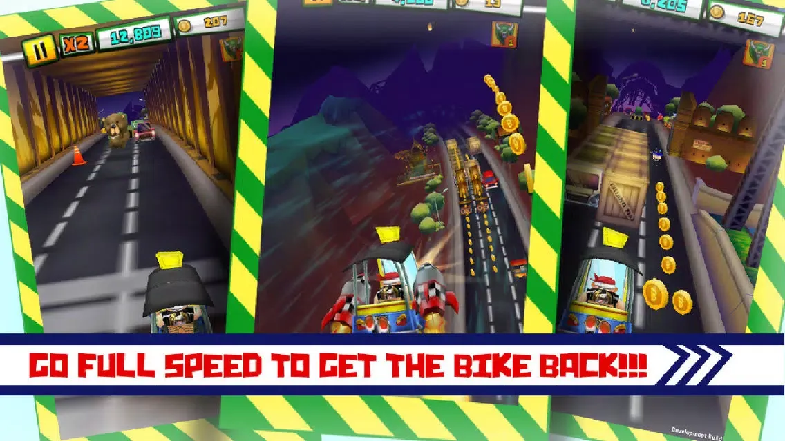 Go to adventure with Mason,the elder biker who got stolen his bike by the animal gang from zoo.