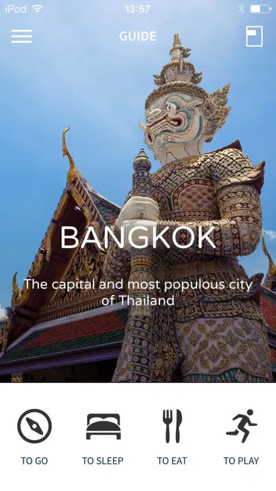 Bangkok - City Guide Mobile Application by Tourism Authority of Thailand. Coming up with Augmented Reality (AR) feature, this app provides you with tourism information of Bangkok and nearby destinations: Nonthaburi, Pathum Thani, Samut Prakhan, Samut Sakhon, where you can find Attractions, Accommodations, Food & Drink, Activity, About Bangkok, Thailand top destinations and more.