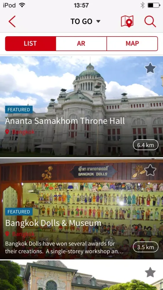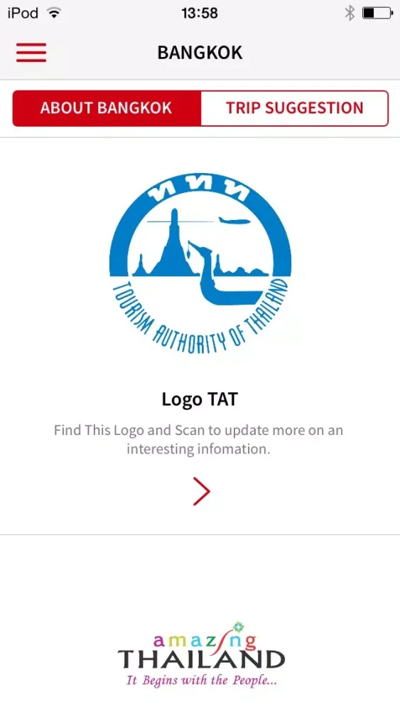 Besides, delight in our proudly-present features: Mark-based AR and Snap shot - AR. In order to get more detail of the places, Snap shot - AR gives you an endless imagination of capturing a landmark of Thailand's top destinations, whereas Mark-based AR allows you to scan attraction signs.