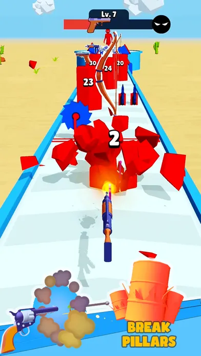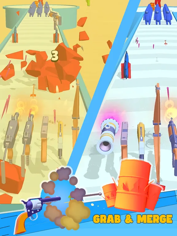Grab the guns by breaking the columns. merge with the guns in hand. Reach how many bosses from the obstacles.