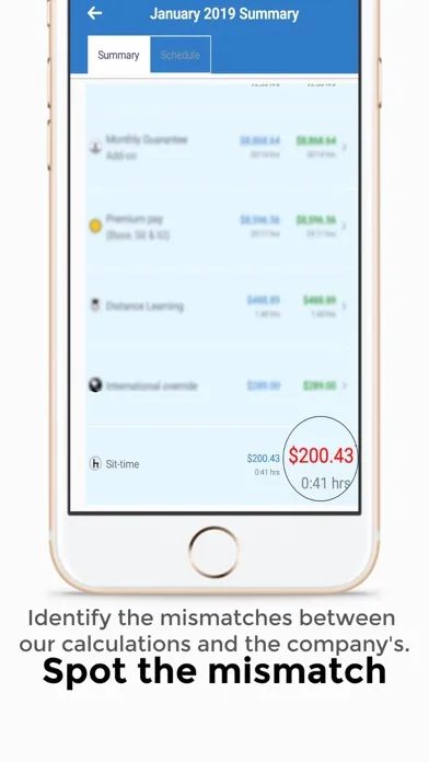 Check My Pay helps you understand your paycheck and ensures you get paid everything you are owed. The Check My Pay system takes a monthly schedule and analyzes it. We notify you directly with any pay discrepancies we identify. In addition, you may see how much you are projected to make each month, compare our paycheck calculations with the company's and verify any errors for yourself through our app.