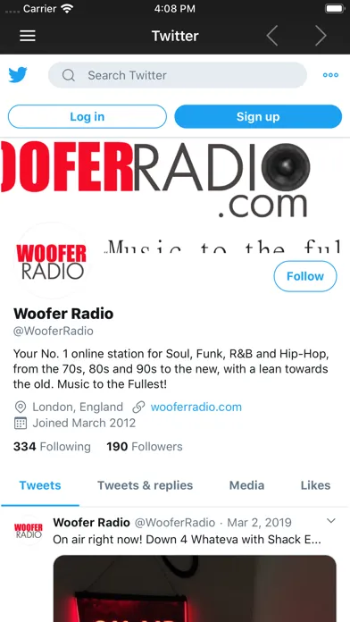 Listen to Woofer Radio 24/7 from this mobile app. Woofer Radio plays you Soul, Funk, R&B, Jazz-Funk and Hip-Hop from the old to the new, with a lean towards the old!