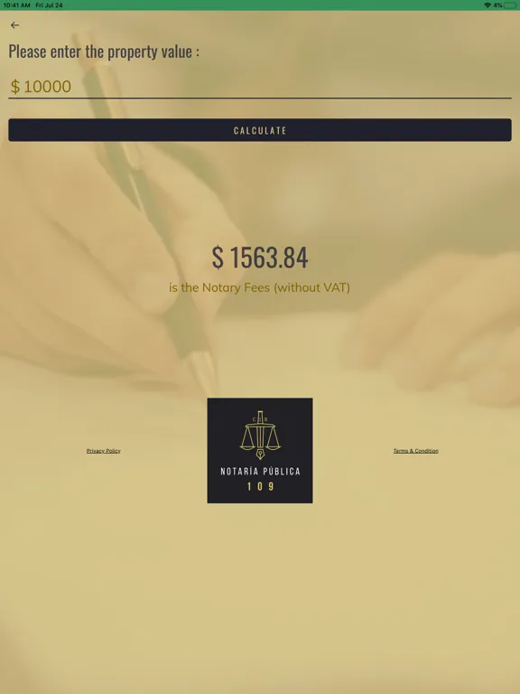 Calculate how much fees the Notary will charge you on the click of a button and receive the fee amount automatically on email as well.