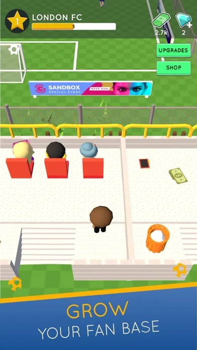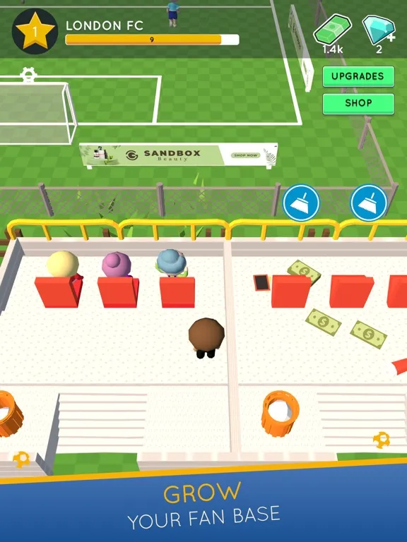 Start from the bottom, literally at the grassroots: Start the game as a simple homeless person on a bench and single-handedly clean the fan zones, collect tickets at the turnstiles, manage your vendor payments and collect some tips!