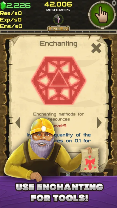 - Use enchanting to improve your tools and get more resources