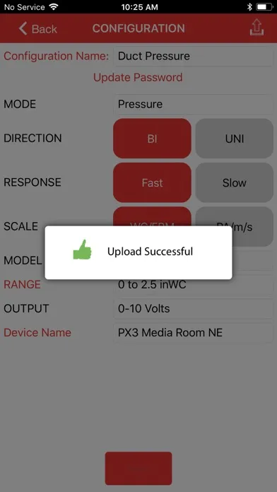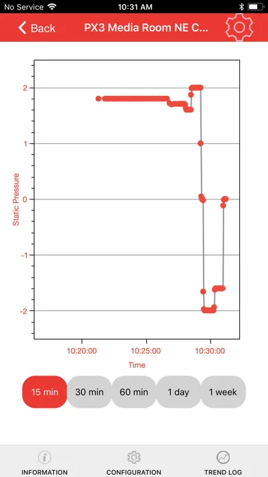 The Veris Sensors app provides the ability to view the PX3 sensor and configure a variety of field-selectable parameters remotely from a smart device via Bluetooth® wireless technology. The app allows users to create and store commonly used parameters that will reduce commissioning time and provide assurance that all parameters are properly configured with no call backs. The app can also create a trend log while connected, providing critical data for troubleshooting purposes.