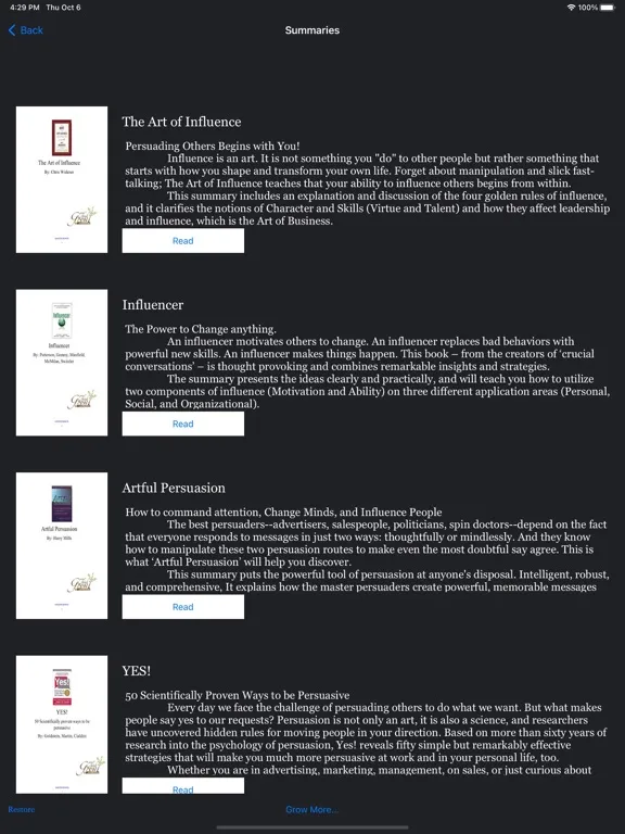 Reading one book summary a day is a relatively easy task. This will give you - in less than two weeks – good knowledge of the key concepts in these books, and help you build your repertoire of influence and persuasion strategies, as well as your knowledge of key negotiation techniques and gambits…