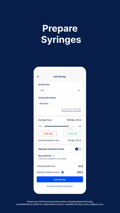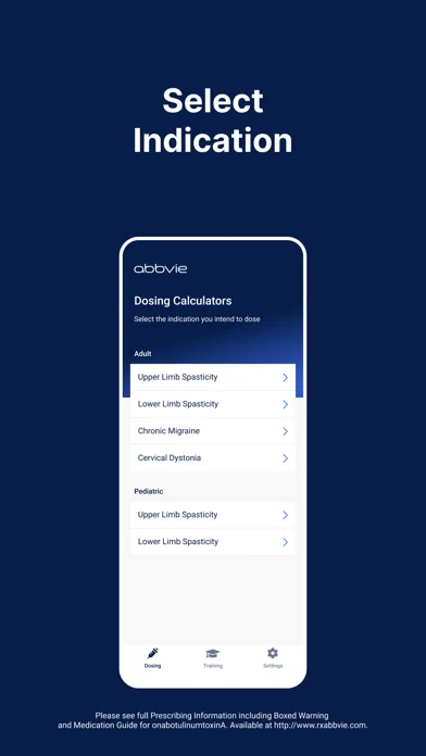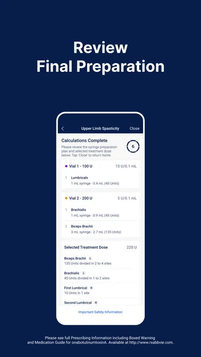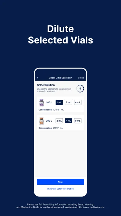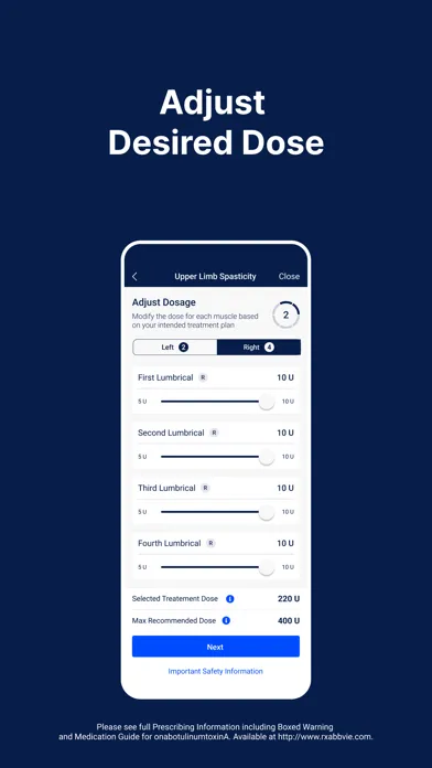OnADose is an onabotulinumtoxinA dosing and reconstitution educational tool for spasticity, cervical dystonia, and chronic migraine.