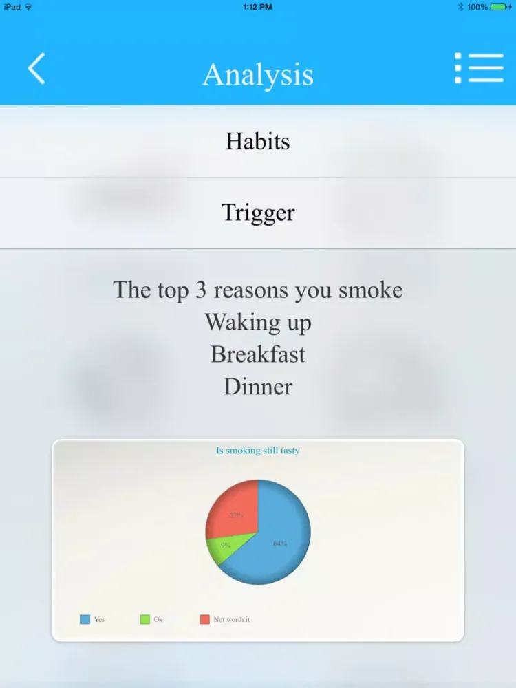 •One of a kind analysis on your smoking habits and behaviors with recommended course of actions